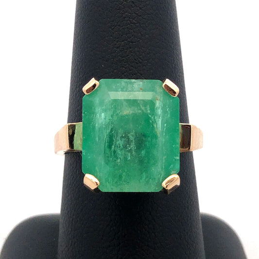 Estate Designer 14K Yellow Gold Emerald Cut Emerald Statement Solitaire Ring