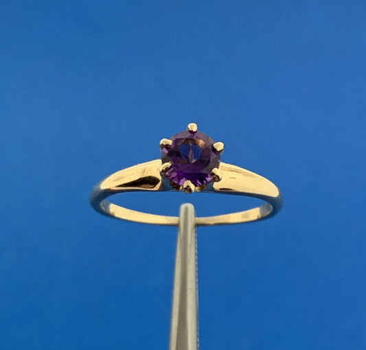 14K Yellow Gold Amethyst Solitaire February Anniversary Occasion Ring