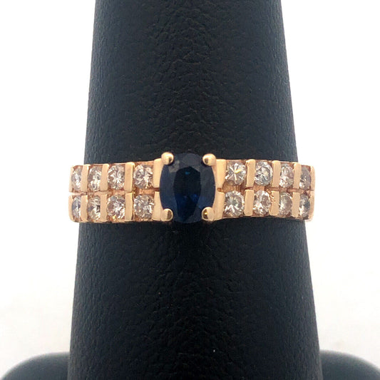 Vintage 14K Yellow Gold Oval Sapphire Diamond Accent Anniversary Ring