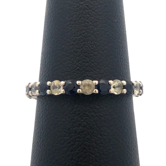 14K White Gold Blue And White Sapphire Anniversary Wedding Band Ring