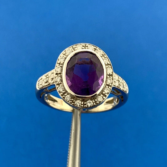 Gorgeous 14k White Gold Oval Purple Amethyst Diamond Halo Accent Ring Size 4.75