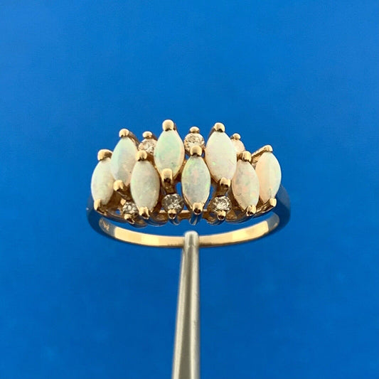 14K Yellow Gold Marquise Opal Diamond Accented Waterfall Cocktail Ring