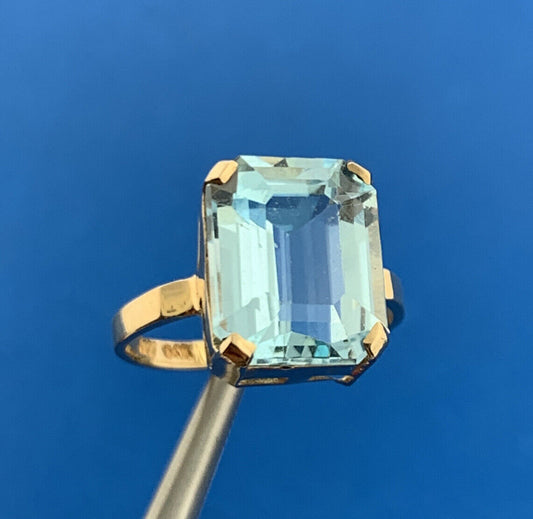 Estate Designer 14K Yellow Gold Rectangle Blue Topaz Solitaire Statement Ring