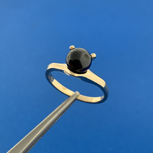 Designer Spring 10k Yellow Gold Cabochon Black Onyx Sphere Ring Size 6.25