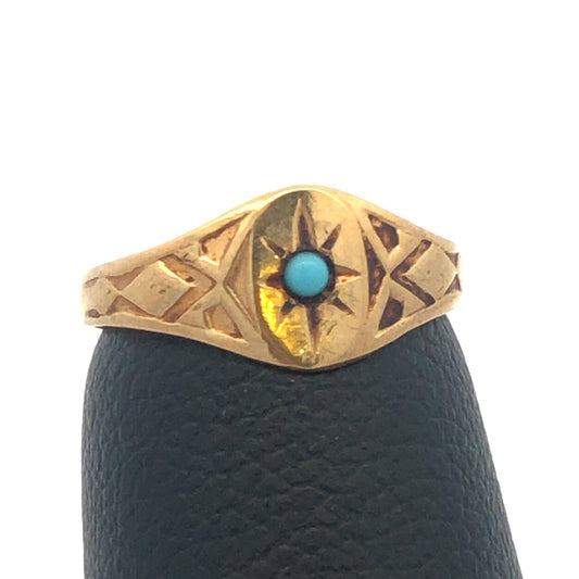 Antique 10K Yellow Gold Turquoise Seed Bead Child's Ring Size .05