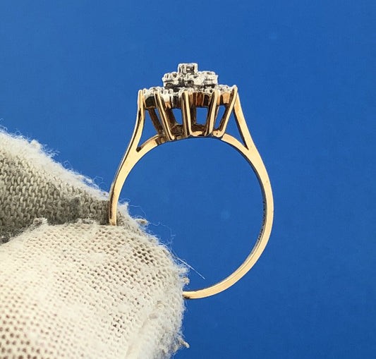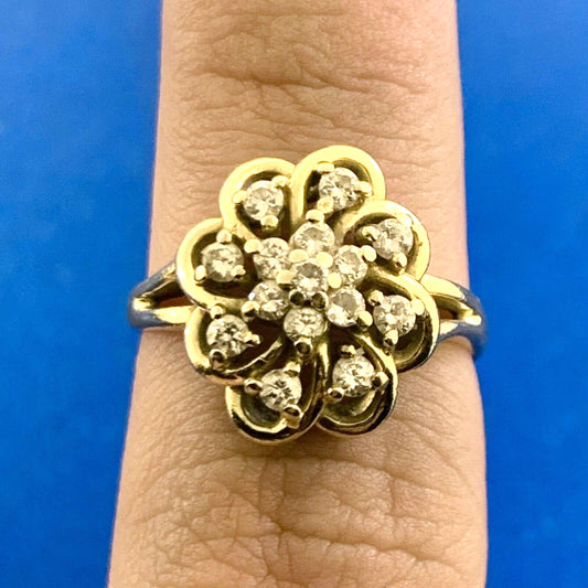 Designer Estate 14K Yellow Gold Diamond Flower Cluster Cocktail Ring