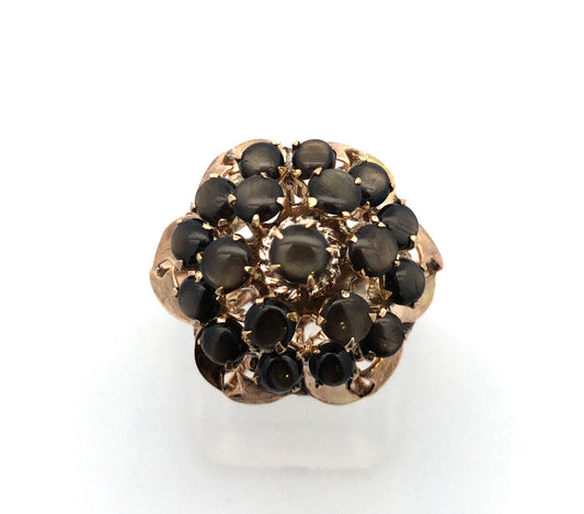 Retro 10K Yellow Gold Smoky Quartz Solitaire Statement Cocktail Ring