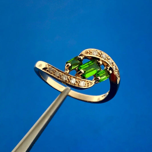 10k Yellow Gold Emerald Cut Green Tourmaline Diamond Accent Bypass Ring Size 6.5