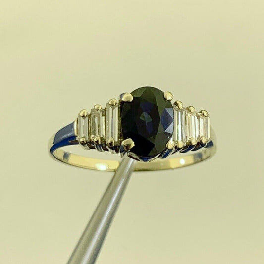 Gorgeous 10k White Gold Marquise Tanzanite Baguette Diamond Accent Ring Size 7
