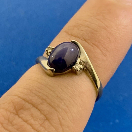 Gorgeous 10k Yellow Gold Oval Cabochon Blue Star Sapphire Dome Ring Size 9.25