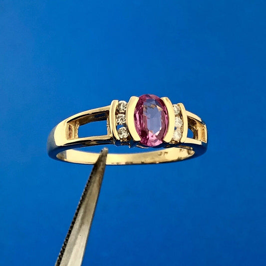 Vintage 10K Yellow Gold Oval Pink Sapphire Diamond Accent Cocktail Ring