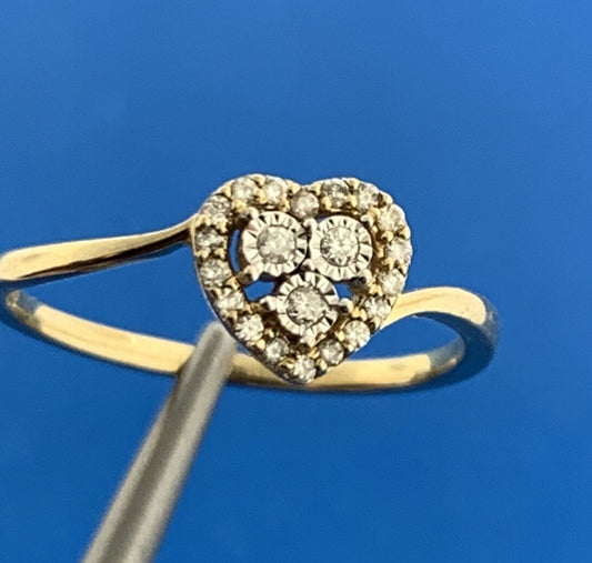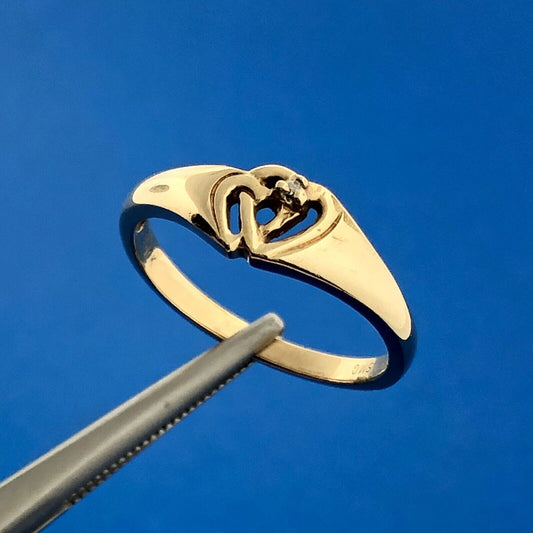 Gorgeous 14k Yellow Gold Round Cut Diamond Small Heart Filigree Ring Size 5.5