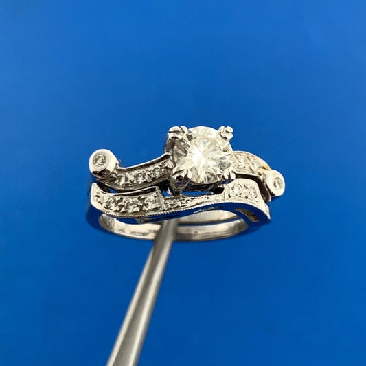 Art Deco 14K White Gold Diamond Solitaire w/Accents Interlocking Bridal Set