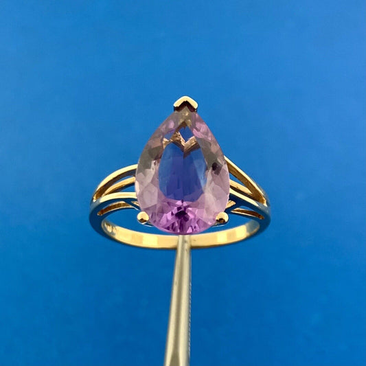 Designer 10k Yellow Gold Pear Cut Purple Amethyst Statement Ring Size 8.75