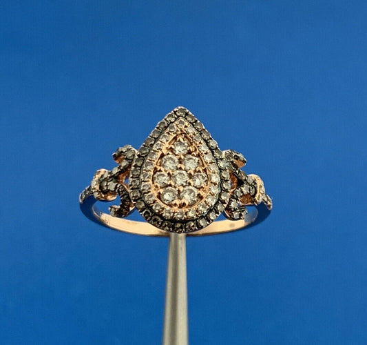 Designer 14K Rose Gold White Chocolate Pave Diamond Fleur De Lis Pear Ring