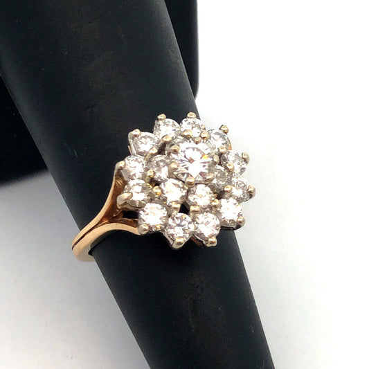 Designer 14K Yellow Gold Round Diamond Cluster Cocktail Statement Ring
