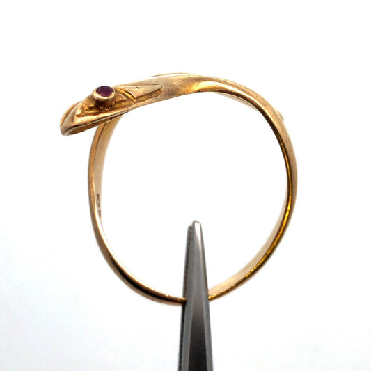 Vintage 14K Yellow Gold Ruby Polished Snake Bypass Size 9 Cocktail Ring