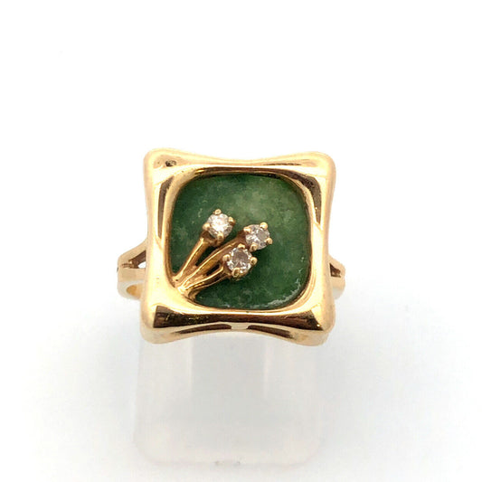 Designer 14K Yellow Gold Green Square Jade Diamond Modernist Statement Ring