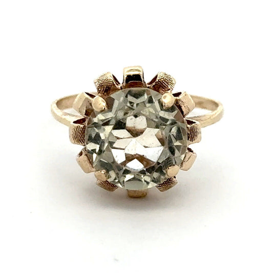 Designer ESEMC 10K Yellow Gold Round White Amethyst Solitaire Ring