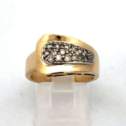 Designer 14K Yellow Gold Diamond Modernist Anniversary Buckle Ring