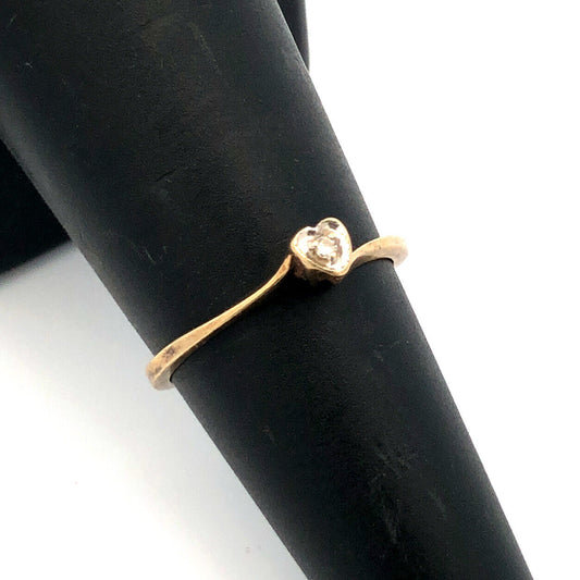Designer 10K Yellow Gold Round Diamond Heart Promise Sweetheart Ring