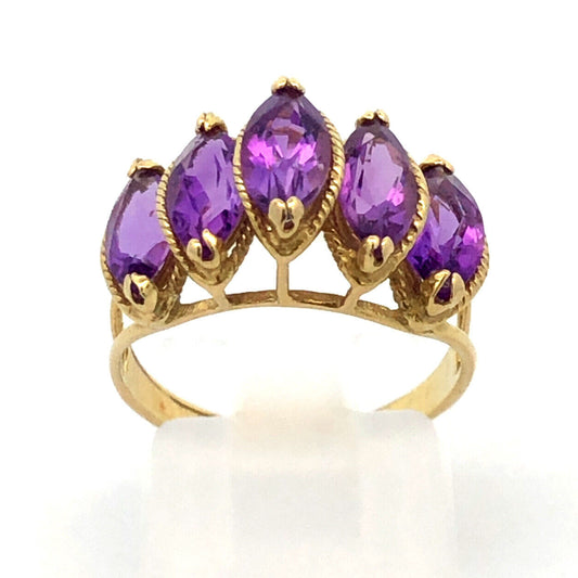 Vintage 14K Yellow Gold Marquise Amethyst Statement Ring