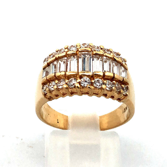 Designer 14K Yellow Gold Baguette Cubic Zirconia Statement Cigar Band Ring