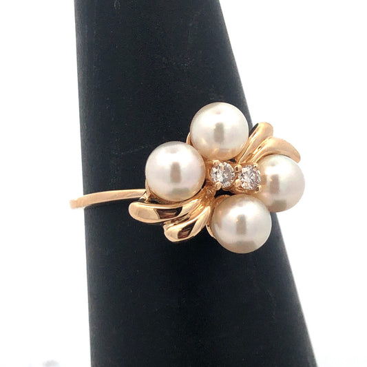 Designer WE 14K Yellow Gold Round Pearl Diamond Accent Cocktail Ring