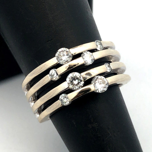 Designer 14K White Gold Round Diamond Wide Multi-Band Statement Ring