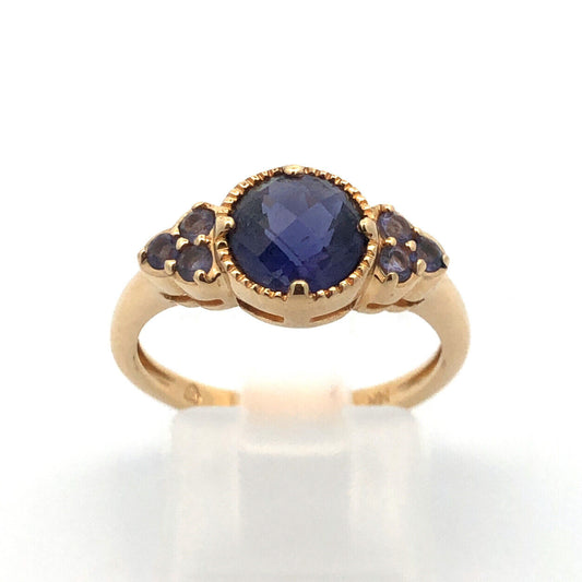 Designer 14K Yellow Gold Round Cushion Cut Tanzanite Ring