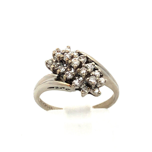 Designer 14K White Gold Round Diamond Cluster Waterfall Bypass Anniversary Ring