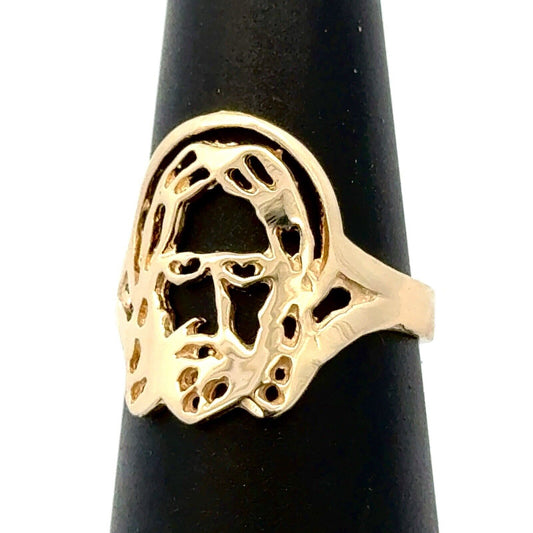 14K Yellow Gold Modernist Cutout Jesus Christ Face Religious Ring