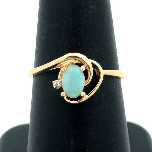 Designer FM 10K Yellow Gold Oval Opal Diamond Accent Occasion Anniversary Ring