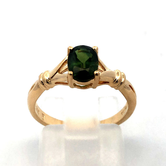 Designer 14K Yellow Gold Oval Green Tourmaline Solitaire Anniversary Ring