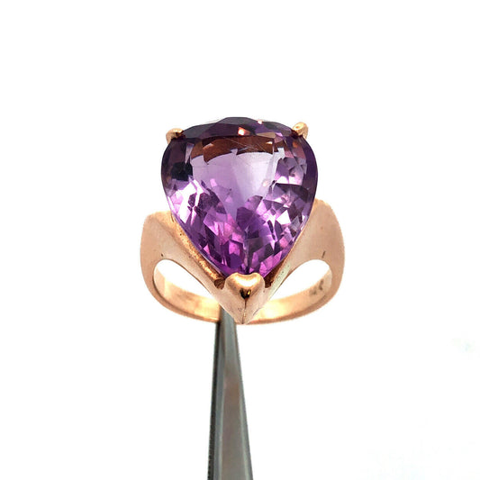 14K Yellow Gold Pear Cut Amethyst Solitaire Statement February Anniversary Ring