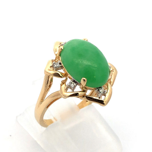 Designer 14K Yellow Gold Oval Jade Cabochon Diamond Accent Cocktail Ring