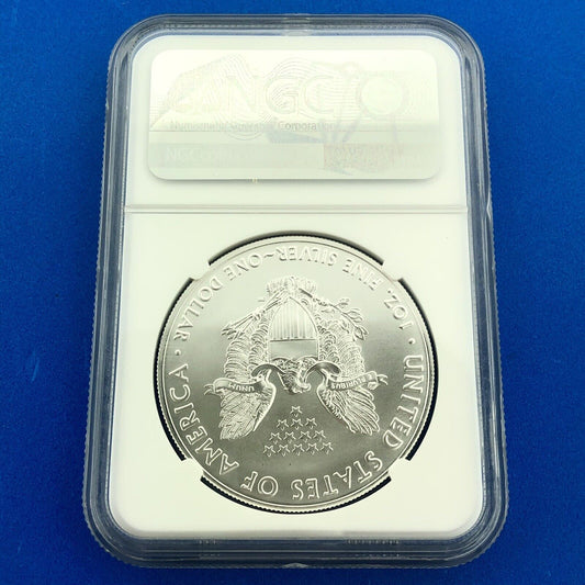 1999 $1 American .999 Silver Eagle Reverse Struck Thru Mint Error NGC MS69 Coin