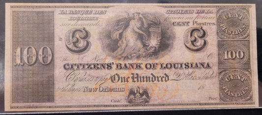 1800s $100 Citizens Bank of Louisiana PCGS Gem New 65PPQ Rare Obsolete Bank Note
