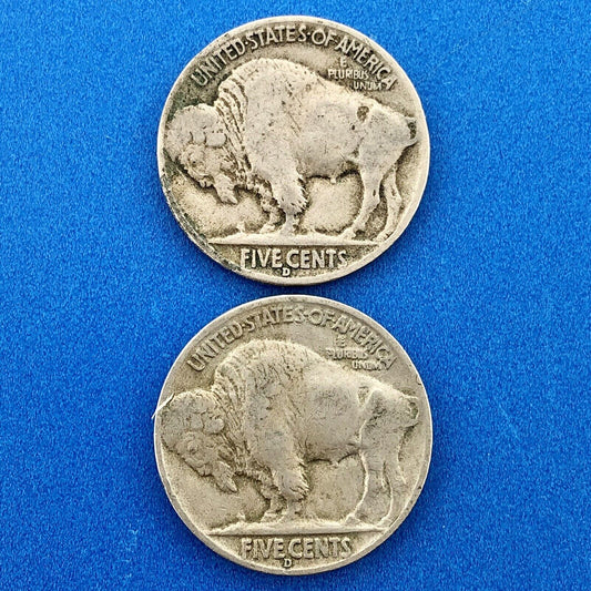 1938 D Indian Head Buffalo Nickel Key Better Rare Denver Mint Two Coin Lot