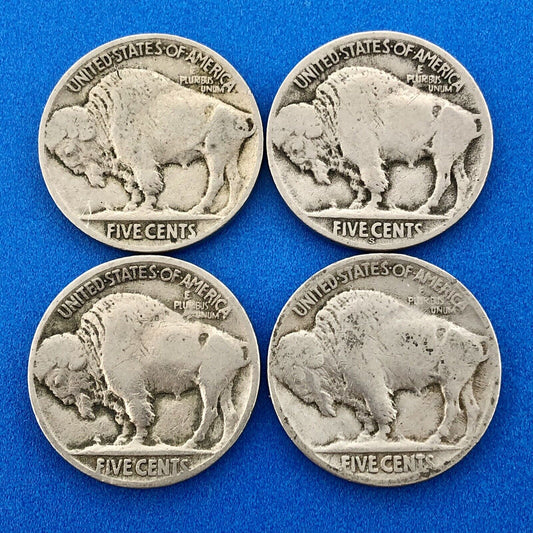 1921 P Indian Head Buffalo Nickel 5c Mixed Date Mint Mark Four Coin Lot