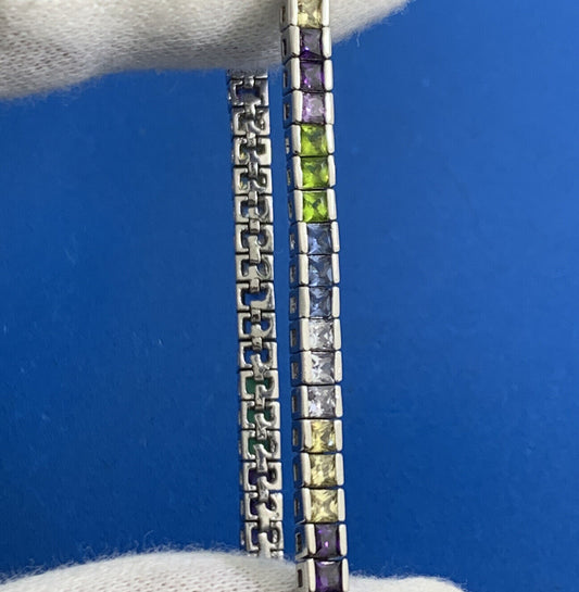 FAS Citrine White Purple Amethyst Peridot Blue Tourmaline Sterling Tennis Bracel