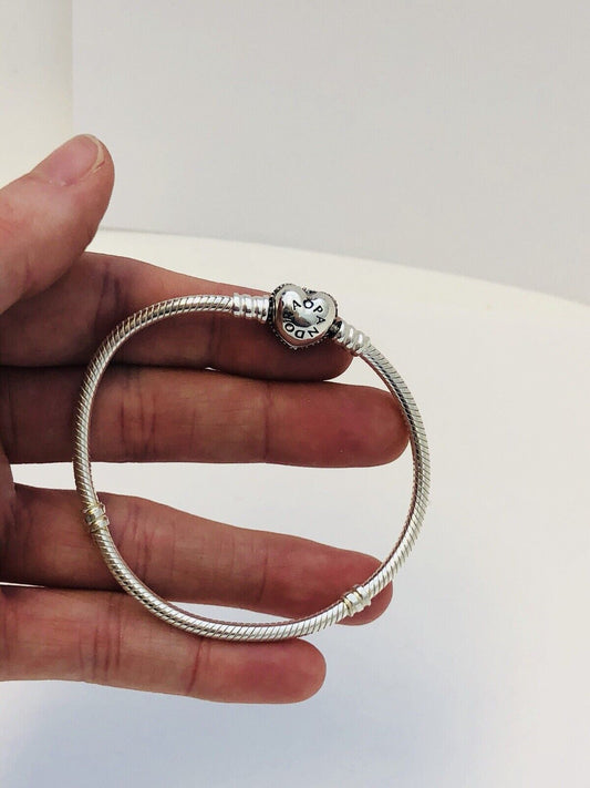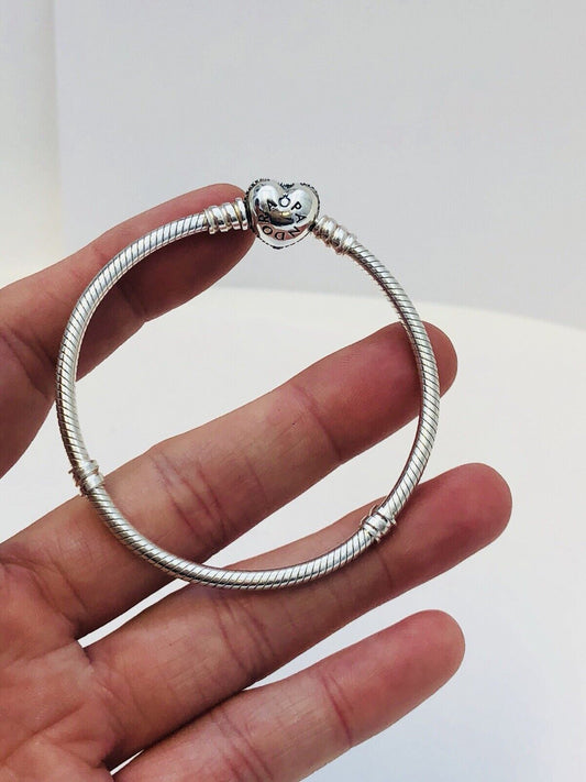 Authentic PANDORA 925 Sterling Silver Classic Snake Barrel Clasp Charm Bracelet