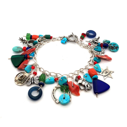Native American 925 Sterling Silver Multistone Charm Statement Bracelet