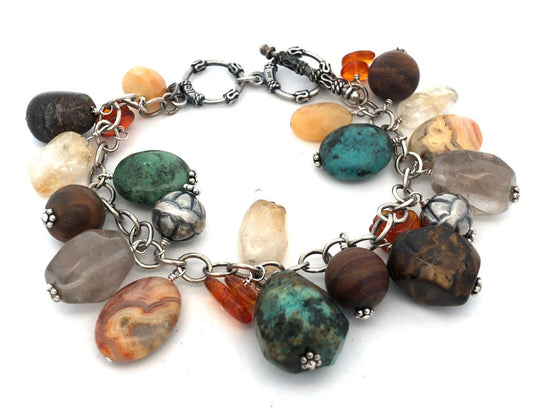 Silpada 925 Sterling Silver Multi-Gemstone Turquoise Agate Charm Chain Bracelet