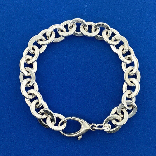 Designer 925 Sterling Silver Flat Circle Link Statement Fashion Charm Bracelet