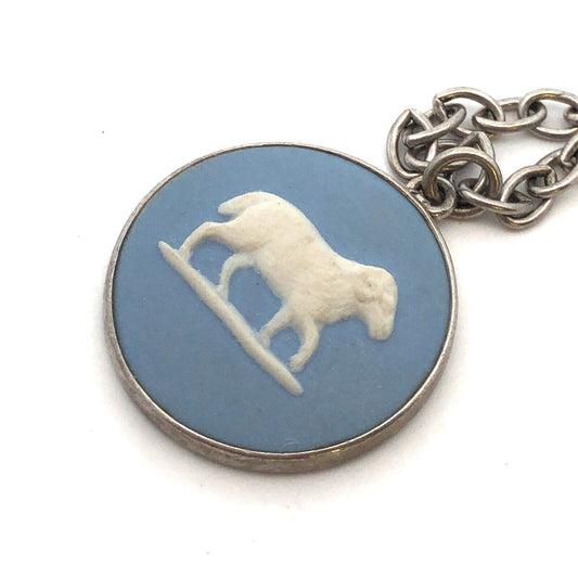 JW Wedgwood England 925 Sterling Silver Blue Sheep Cameo Charm Bracelet