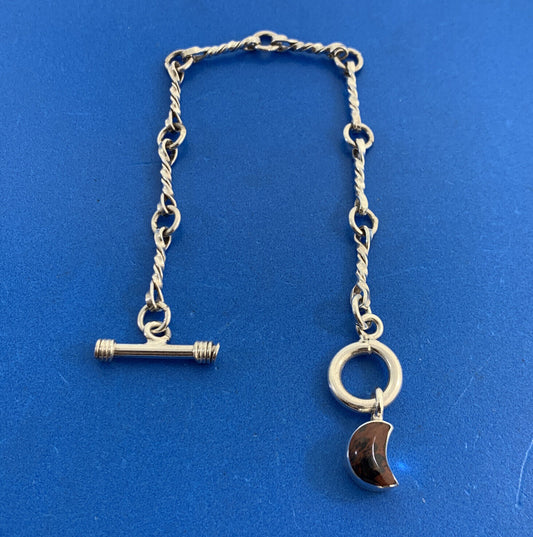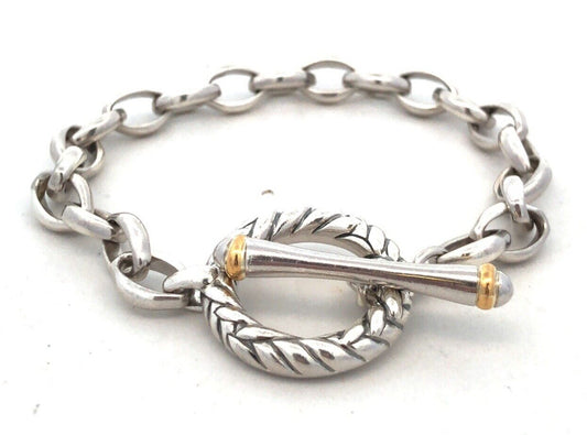 Estate 925 Sterling Silver Gold Vermeil Two Tone Chain Toggle Charm Bracelet