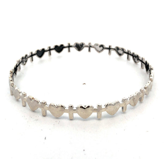Designer R 925 Sterling Silver Cross Heart Love Stackable Round Bangle Bracelet