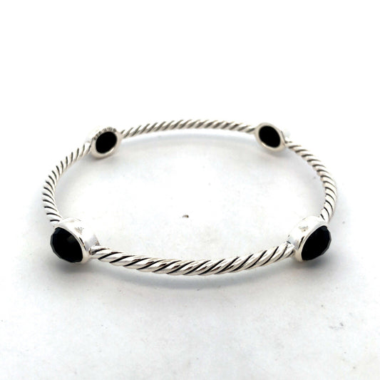 925 Sterling Silver Retired David Yurman Classic Cable Onyx Station Bracelet