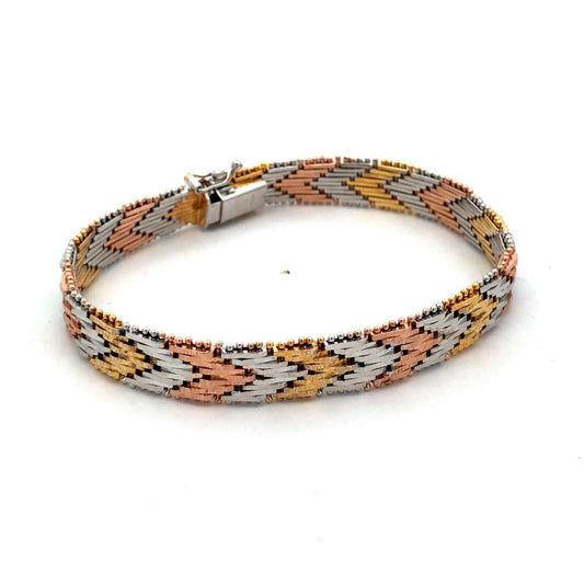 Italy Sterling Silver Gold Rose Gold Vermeil Tri-Color Chevron Chain Bracelet